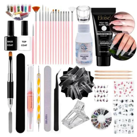 Kit Completo X40 Polygel Decoracion Uñas Manicuria Base Top
